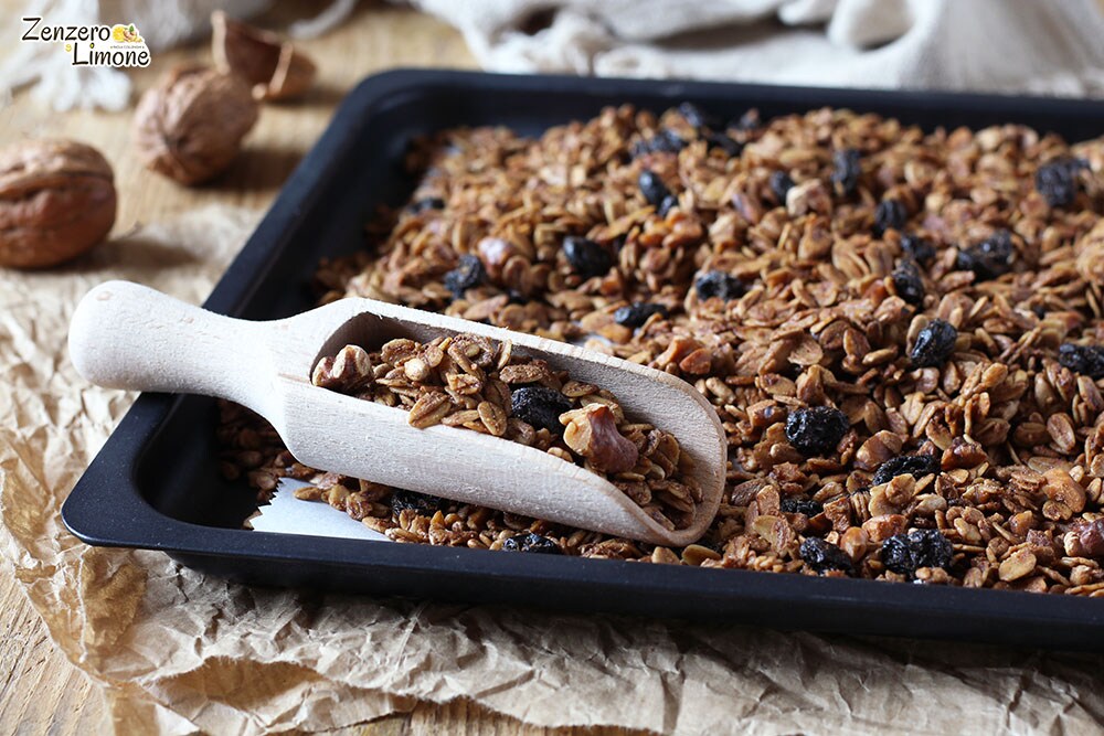 Nach dem Backen das Blech aus dem Ofen nehmen und das Müsli mit Zimt vollständig abkühlen lassen. Sobald es kalt ist, kann es in ein luftdicht verschlossenes Glas übertragen werden. Genießen! Paola.