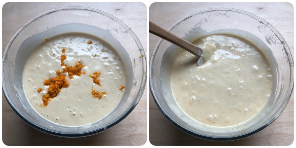• Zum Schluss auch die Orangenschale hinzufügen und alles gut vermischen: Es sollte eine glatte, klumpenfreie Masse entstehen.