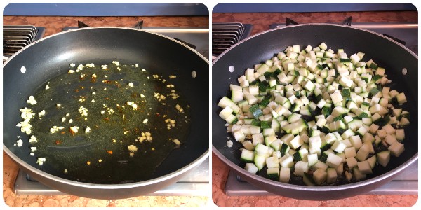 Zubereitung der Pasta mit Garnelen und Zucchini