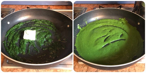 Die Schwarzkohlcreme in die gleiche Pfanne geben und mit ein paar Esslöffeln Kochwasser verdünnen.