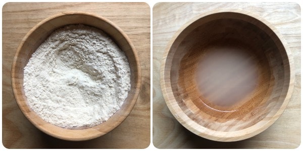 Die beiden Mehlsorten in eine Schüssel geben und vermischen.