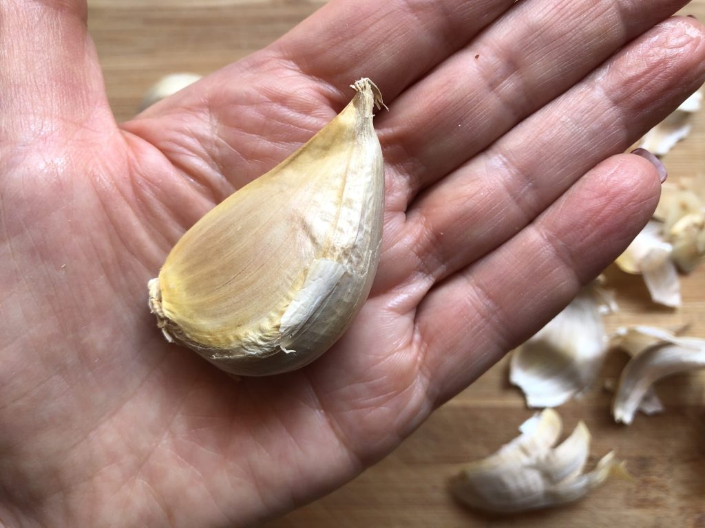 • Die Aglione-Zehen schälen und fein hacken (ich habe dazu ein Wiegemesser verwendet).