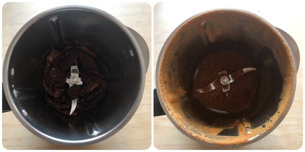 Nach dieser Zeit die Tomaten (die schön trocken und knusprig sein sollten) in einen Mixer geben und zu Pulver mahlen. Es ist nicht notwendig, ein sehr feines Pulver zu erhalten. Ich habe den Bimby verwendet, 25 Sekunden gemahlen und die Geschwindigkeit schrittweise von 7 auf 10 erhöht. Ihr könnt das Auge ruhig abschätzen.