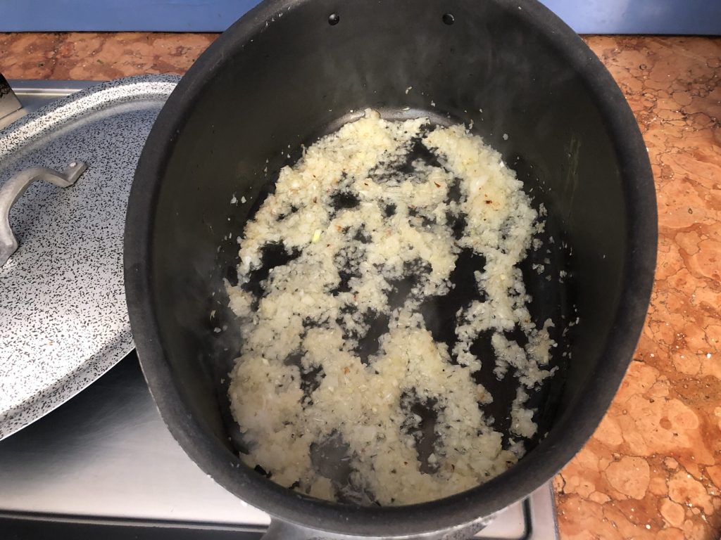 Die Zwiebel schälen und fein hacken. Ich habe einen praktischen manuellen Zerkleinerer mit Schnur benutzt. Wenn Sie ihn kaufen möchten, klicken Sie HIER.