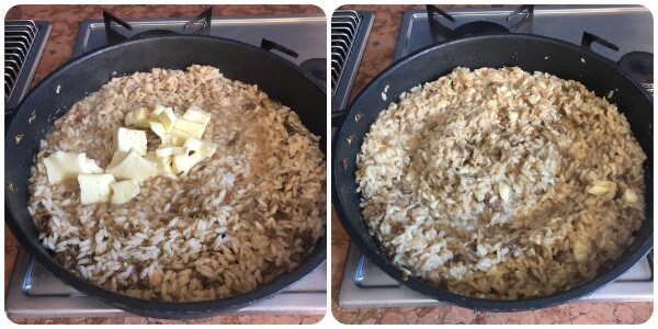 Zubereitung des Risottos mit Steinpilzen und Brie