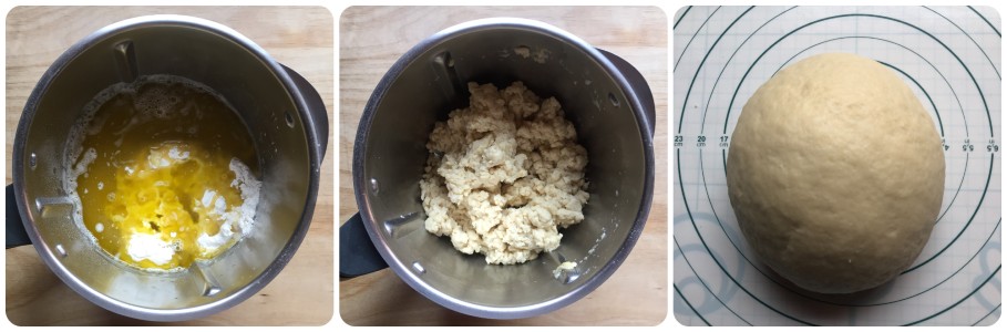 • Alle Zutaten in den Mixtopf geben und für 10 Sek. auf Stufe 3 mischen, dann für 2 Min. auf Stufe Spiga kneten.