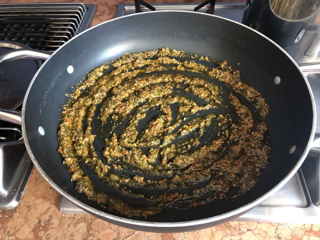 Für einen Moment bei niedriger Hitze durchziehen lassen. Wenn nötig, die Sauce mit etwas vom beiseitegestellten Kochwasser verdünnen.