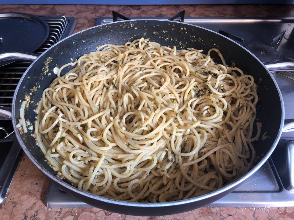 Die schnellen würzigen Spaghetti auf einzelne Teller verteilen, mit den gerösteten Bröseln bestreuen und sofort servieren, damit das Brot seine Knusprigkeit nicht verliert. Guten Appetit! Paola