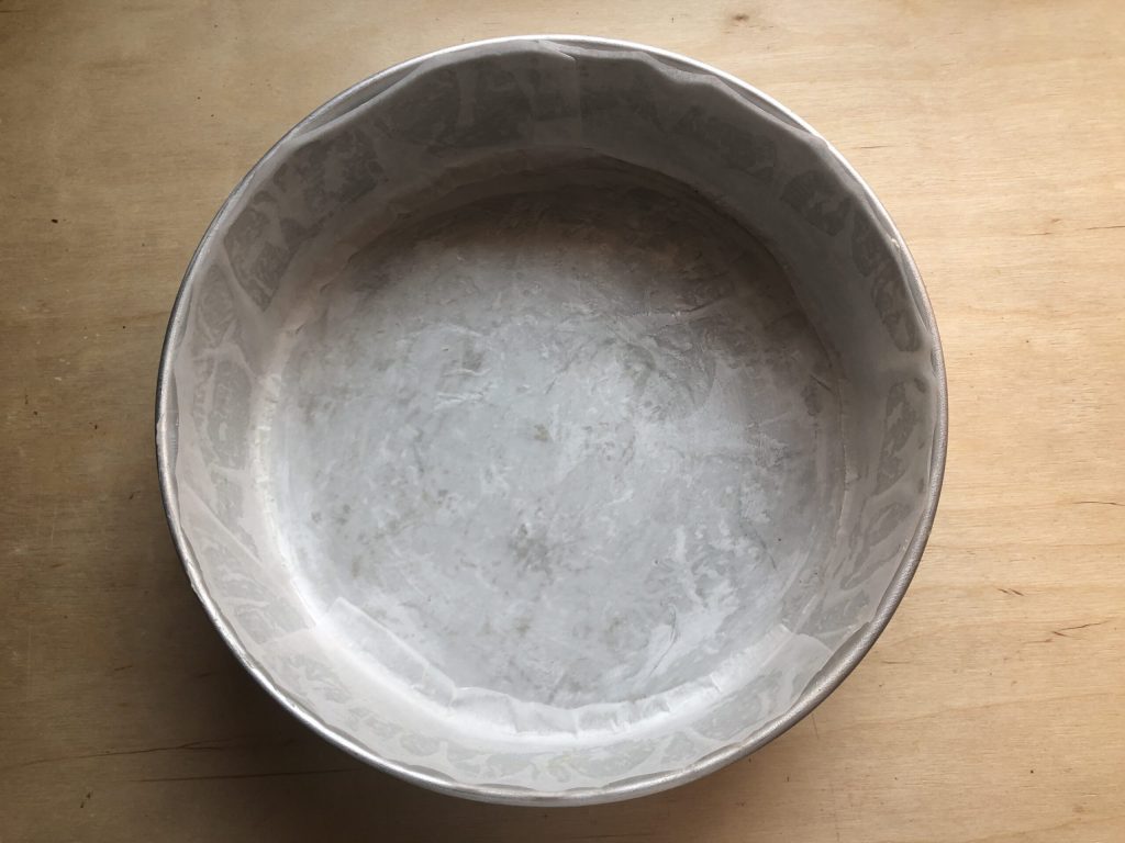 Eine Backform mit hohem Rand und einem Durchmesser von 26/28 cm mit Backpapier auslegen. (Die vollständige Anleitung findet ihr HIER).
