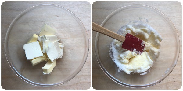 Wenn sie weich ist, den Zucker hinzufügen und kräftig mit einem Spatel zu einer glatten und weichen Creme verrühren. Ihr könnt auch einen elektrischen Handmixer verwenden.