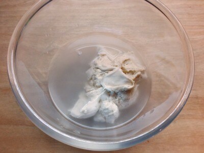 Den Sauerteig (oder die Hefe) in 150 ml lauwarmem Wasser auflösen.