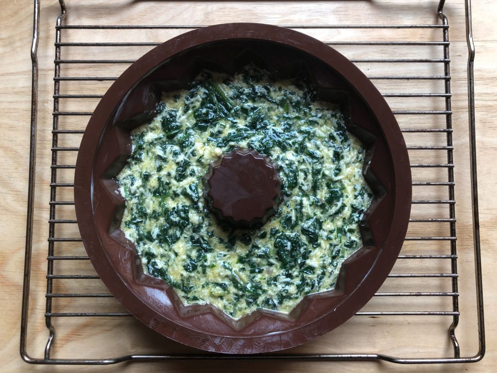 Schließlich 150 g gekochten und gehackten Spinat hinzufügen und gut einarbeiten.