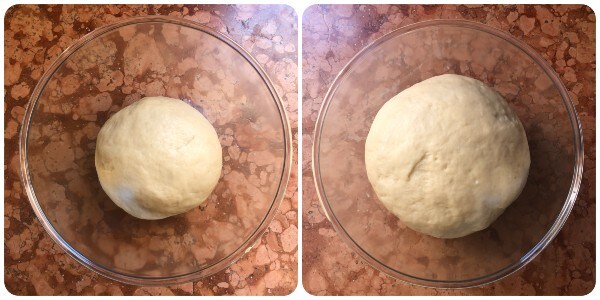 In eine Schüssel legen, mit Frischhaltefolie abdecken und eine Stunde an einem warmen Ort ohne Zugluft gehen lassen.