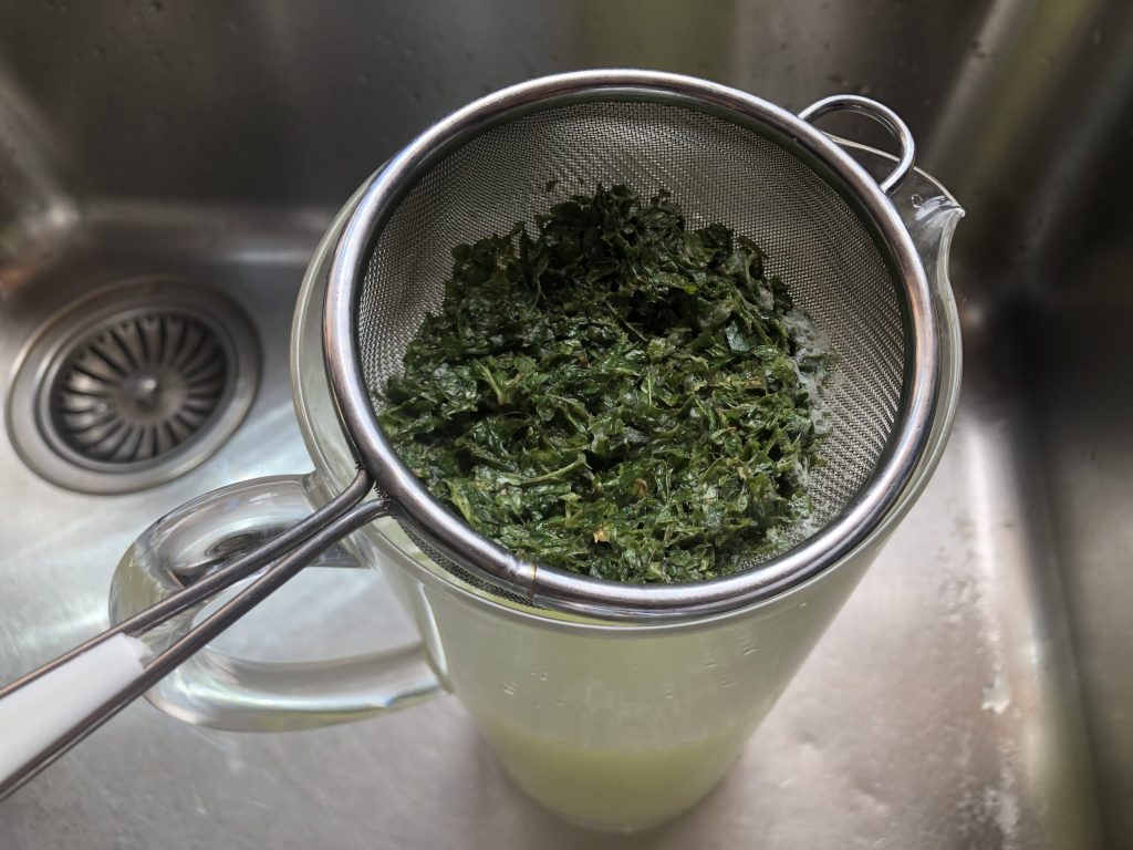 • Zu diesem Zeitpunkt alles durch ein feinmaschiges Sieb in eine Karaffe abseihen.