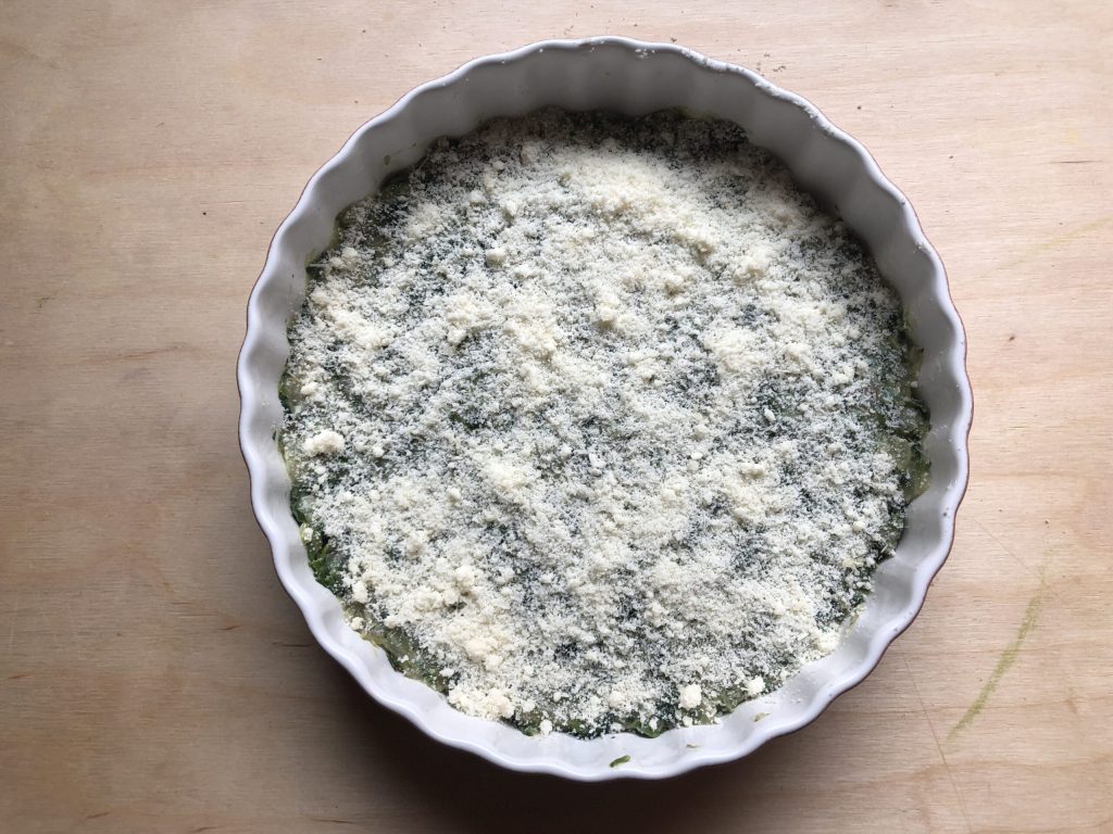 Schließlich die gesamte Oberfläche mit dem geriebenen Käse bestreuen.