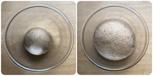 In eine Schüssel legen, mit Folie abdecken und an einem warmen, zugfreien Ort auf das doppelte Volumen aufgehen lassen. Die Gehzeit hängt stark von der Raumtemperatur ab und kann zwischen zwei und vier Stunden variieren.