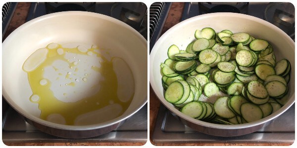 In einer Pfanne ein paar Esslöffel Öl und ein paar Wasser erhitzen, dann die geschnittenen Zucchini hinzufügen. Einige Minuten bei mittlerer Hitze garen, dann leicht salzen und pfeffern (da sie so dünn sind, garen sie wirklich in sehr kurzer Zeit). Gelegentlich umrühren, darauf achten, dass sie nicht zerbrechen. Sie sollten knusprig bleiben und NICHT matschig werden.