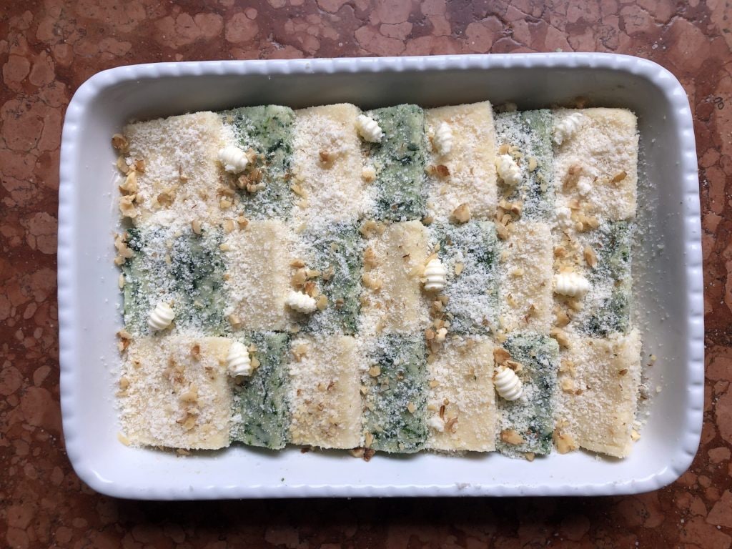 Hier ist ein perfektes Hauptgericht für das Sonntagsessen. Es handelt sich um zweifarbige Grießklöße, die nicht nur köstlich sind, sondern dank des Schachbrettmusters in der Auflaufform auch optisch ansprechend sind. Sie sind ziemlich einfach zuzubereiten und haben den Vorteil, dass man sie im Voraus vorbereiten und kurz vor dem Servieren in den Ofen schieben kann. Eine großartige Sache, wenn man sich um mehrere Gänge kümmern muss. Aber nichts hindert Sie daran, sie auch unter der Woche für ein normales Familienessen zuzubereiten. Ein guter Eindruck ist garantiert.
