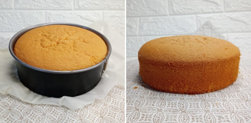 Vollständig in der Form abkühlen lassen. Der Biskuitteig ist fertig.