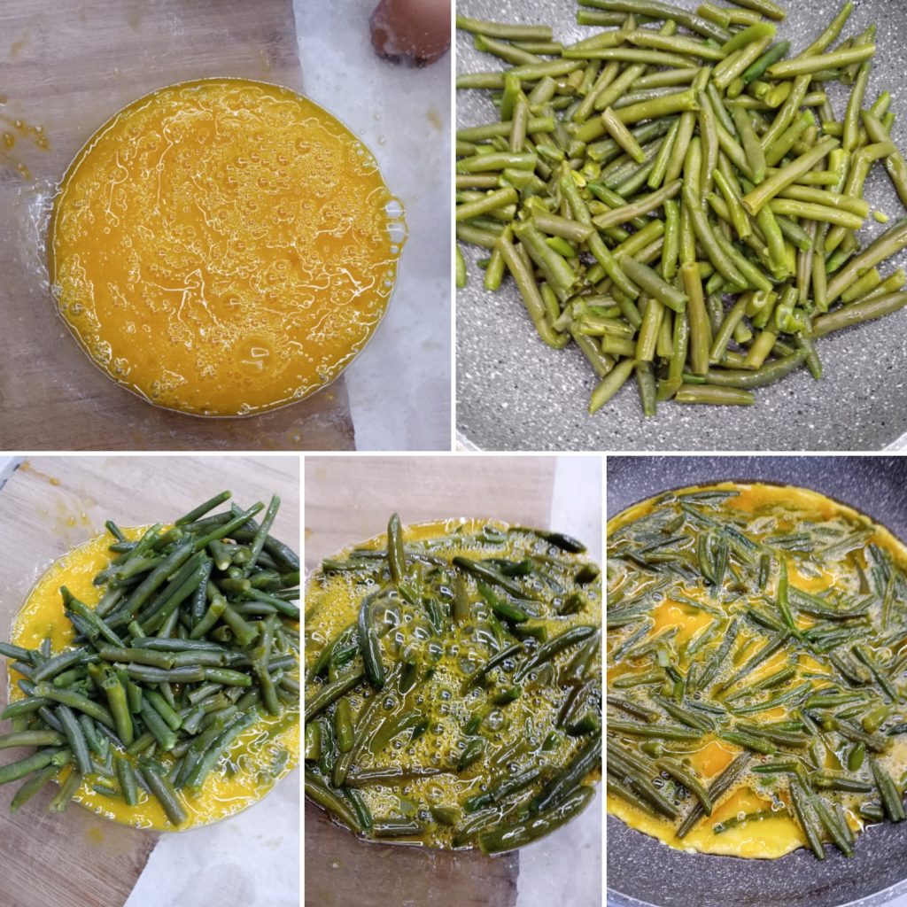 Es ist immer eine gute Zeit für ein leckeres Omelett. Heute habe ich mich entschieden, ein einfaches Omelett mit frischen Bohnen, die ich übrig hatte, zu verfeinern. Ein sehr schmackhaftes und nahrhaftes Omelett. Ich muss sagen, dieses Omelett gefällt allen, besonders meinem Mann, der, obwohl er nicht verrückt nach Gemüse ist, dieses Bohnenomelett sehr gut fand. Es ist in kürzester Zeit zubereitet, ideal für hektische Tage, ein echter Lebensretter fürs Mittag- oder Abendessen.