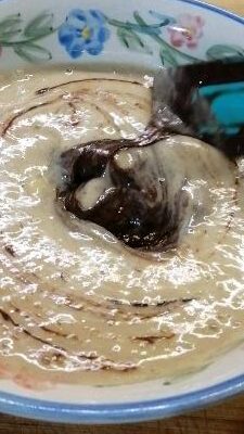 Sobald die Mischung bereit und gut vermischt ist, gieße sie in den Behälter (eine Form, eine Tasse oder eine kleine ofenfeste Schale).