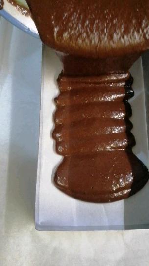 Ich habe eine 20 x 15 cm große Form, die mit Backpapier ausgelegt ist, verwendet.