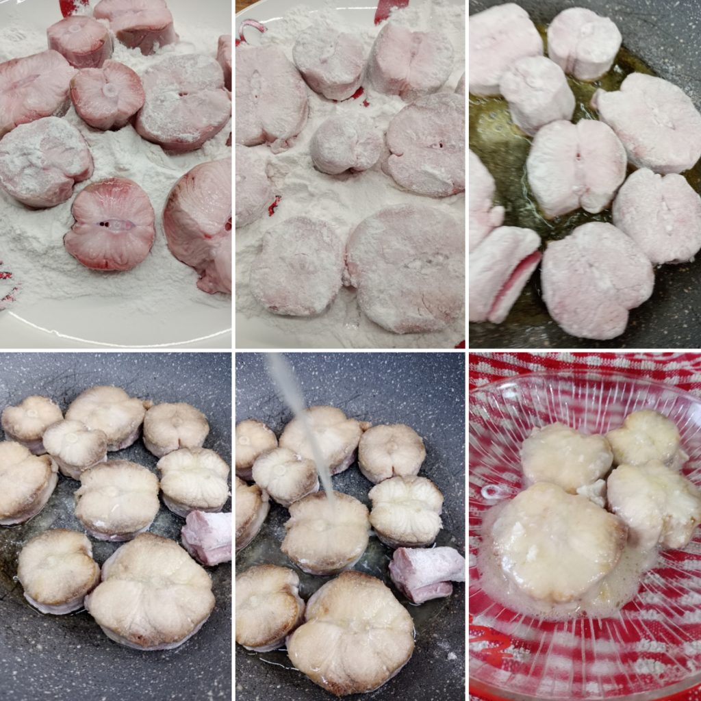 In diesem Rezept habe ich den Dornhai mit einer leichten Panade angereichert, die aus Reismehl und viel Zitronensaft besteht. Dank dieser beiden Zutaten bildet sich am Ende des Kochvorgangs eine köstliche Creme, die Ihnen das Wasser im Mund zusammenlaufen lässt!