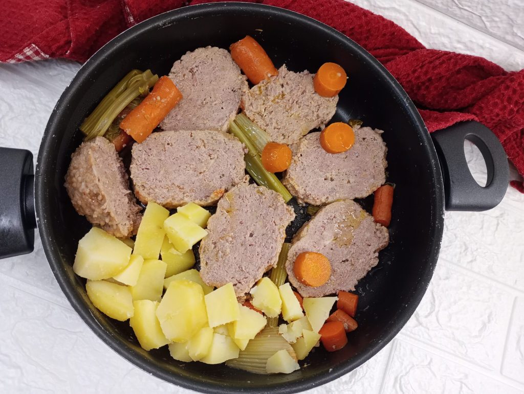 Der geschmorte Falsche Hase ist bereit zum Genießen.