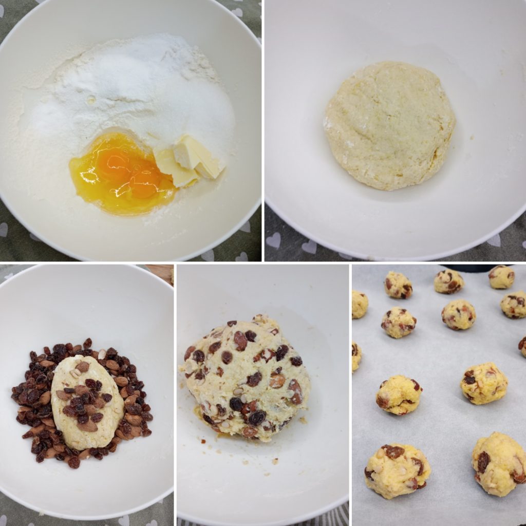 Die Fischerplätzchen sind wirklich sehr einfach herzustellen. Traditionell wurden sie von den Müttern und Ehefrauen der Fischer zubereitet, die für ihre Arbeit mehrere Tage von zu Hause wegblieben. Tatsächlich ist das Merkmal dieser Kekse, dass sie ihren Duft über längere Zeit unverändert bewahren. Die Fischerplätzchen sind wirklich sehr krümelig und werden unwiderstehlich mit der Zugabe von Trockenfrüchten direkt in den Teig. Lasst uns anfangen zu Backen.