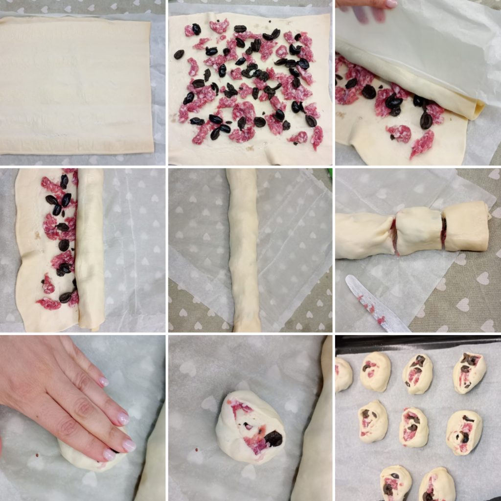 Schritte für die herzhaften Schnecken mit Wurst und Oliven