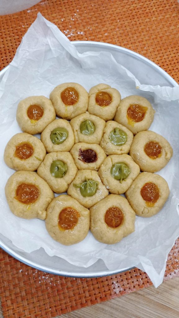Eine Keks-Torte zum Genießen. Ich habe diese Keks-Torte mit weichem Mürbeteig aus Öl gemacht. Ein Mürbeteig, der nie enttäuscht, weil er beim Backen aufgeht und das Innere super weich bleibt. Ich habe die Keks-Torte mit Pistaziencreme und Orangenmarmelade verfeinert, man kann sie nach Geschmack füllen. Der Mürbeteig ist schnell gemacht, dann formt man einfach Kugeln, die in eine Form gelegt werden, macht in der Mitte ein Loch mit einem Korken oder einfach mit dem Finger und füllt sie nach Belieben.