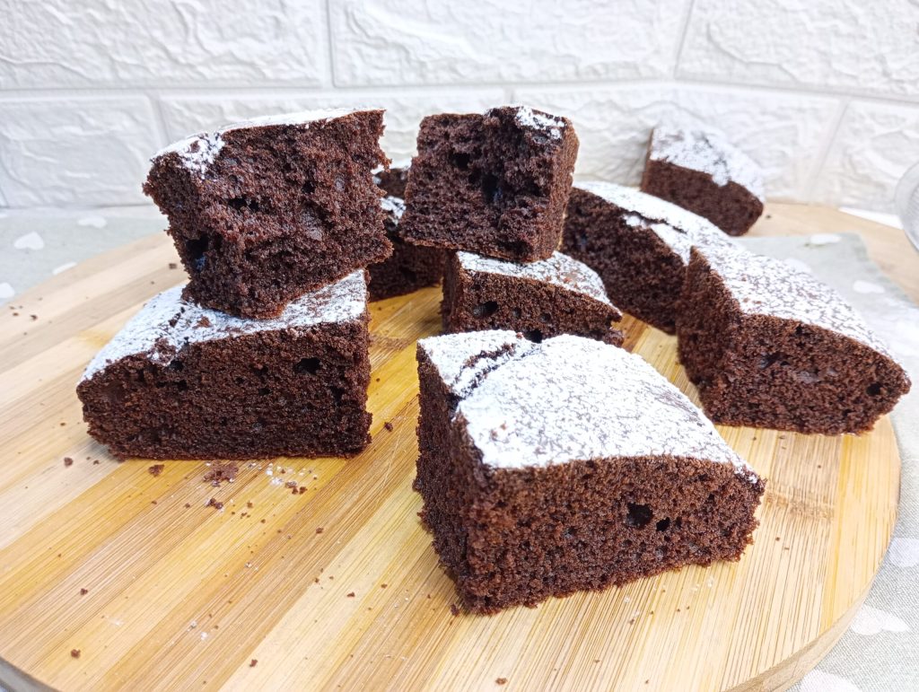 Es ist im Nu zubereitet, dieser Kakao-Kuchen ist ohne Öl und ohne Butter, im Teig habe ich frische flüssige Sahne verwendet, die diesen Kuchen wolkig weich macht.