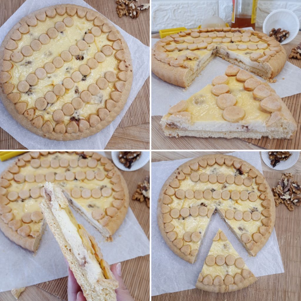 Der Mürbeteigkuchen mit Ricotta, Honig und Walnüssen ist bereit zum Genießen. Ich hoffe, dir hat dieses Rezept gefallen, bis zum nächsten Mal.