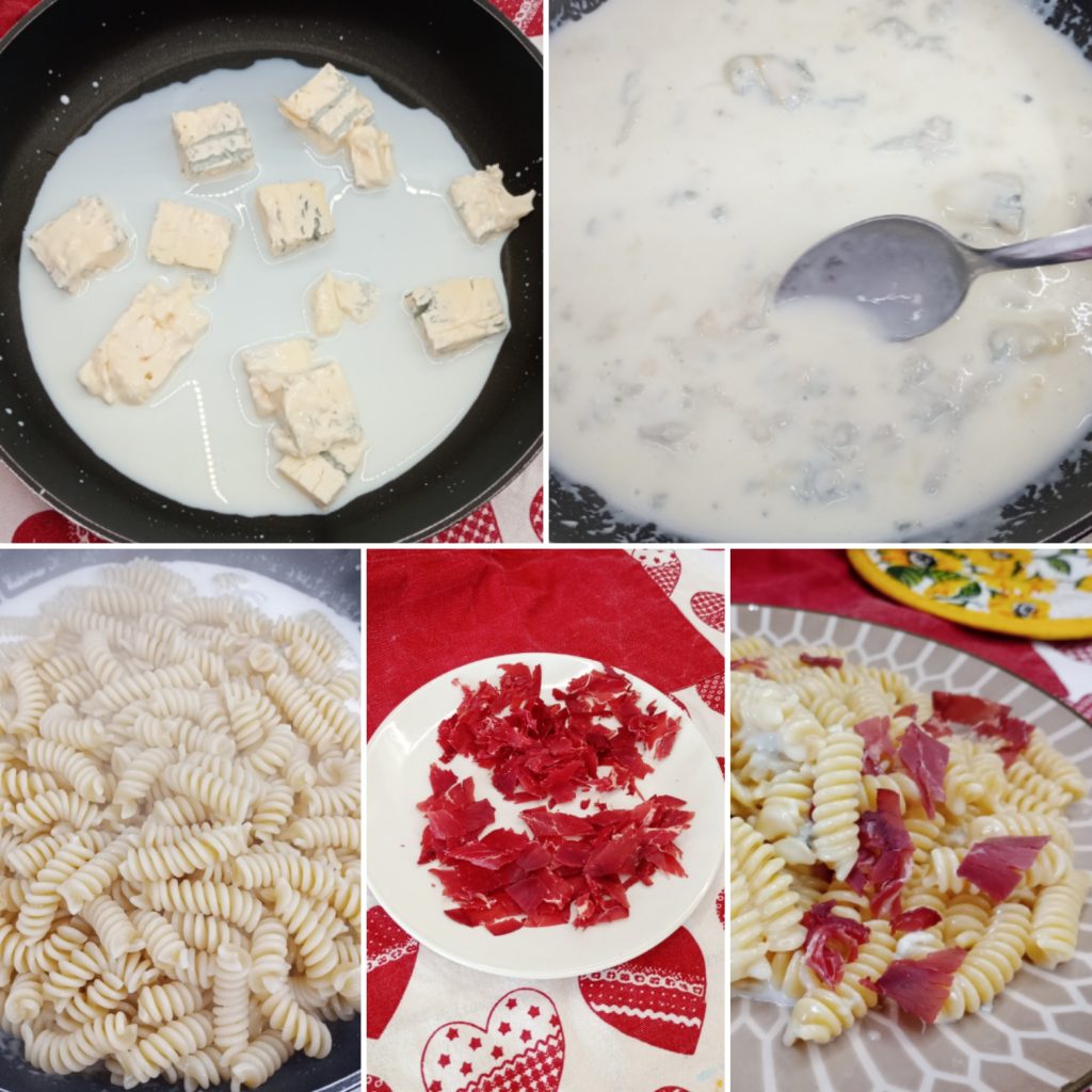 Sobald die Pasta abgetropft ist, wird sie sofort mit dieser warmen Creme gemischt. Dann wird die Bresaola in feine Streifen geschnitten hinzugefügt. Die Wärme der Pasta lässt die Bresaola ihr ganzes Aroma entfalten und schafft einen perfekten Kontrast zwischen der süßen Cremigkeit des Gorgonzola und dem würzigen und leichten Geschmack der Bresaola. Ein einfaches Gericht, das alle zufriedenstellt. Kommt mit mir, wir fangen gleich an. Gutes Rezept, Giusi.