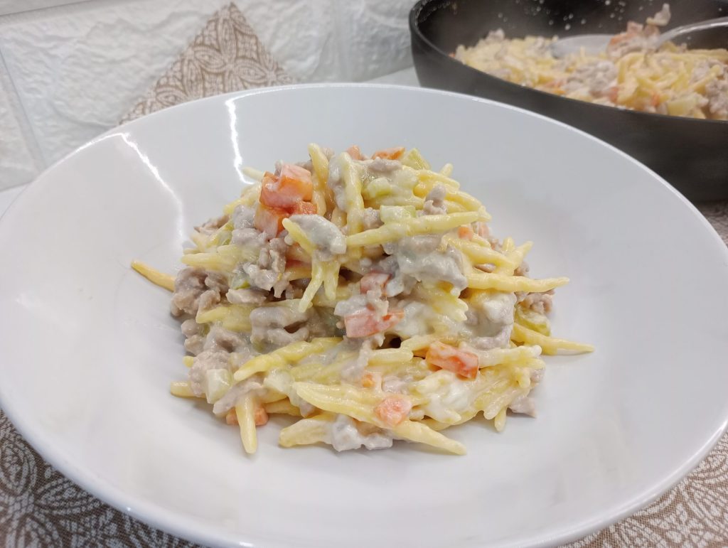 Pasta mit weißem Ragù.