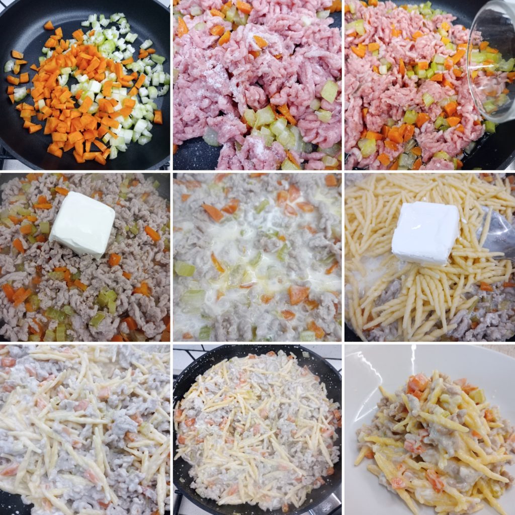 Schritte für die Pasta mit weißem Ragù