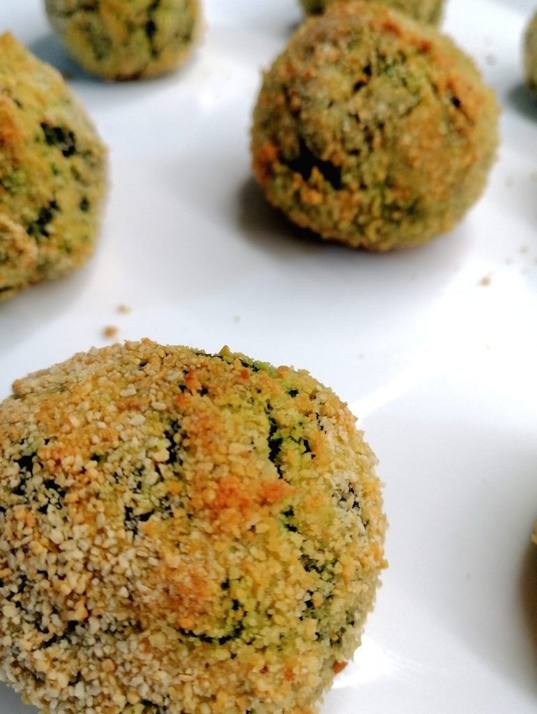 Die Ricotta- und Spinatbällchen sind fertig, innen weich und außen knusprig.