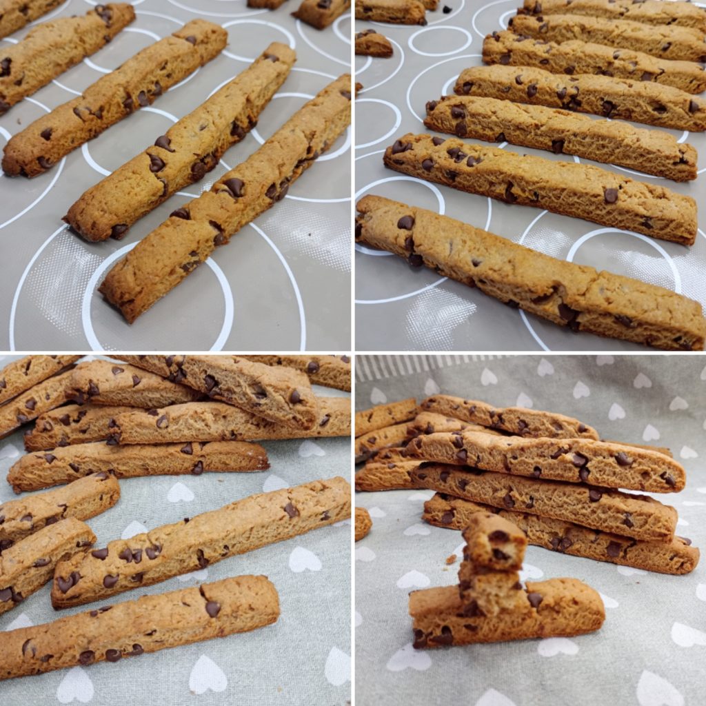 Die Stäbchen auf ein mit Backpapier oder einer Siliconmatte ausgelegtes Backblech legen. Im bereits vorgeheizten statischen Ofen bei 180 °C für etwa 20 Minuten backen. Die Kekse sind fertig, wenn sie an den Rändern goldbraun sind.