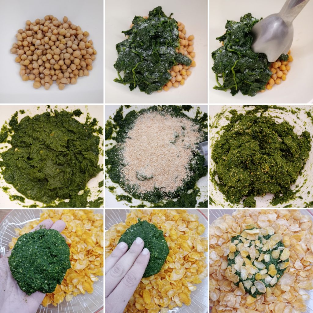 Heute teile ich mit euch diese Spinat- und Kichererbsenschnitzel. Ich liebe Gemüse und besonders Hülsenfrüchte, aber leider kann ich sie oft wegen Verdauungsproblemen nicht essen. Deshalb habe ich mich entschieden, die Kichererbsen zusammen mit dem Spinat zu pürieren, dieser Schritt macht sie leichter verdaulich. Die Spinat- und Kichererbsenschnitzel sind wirklich lecker, sie sind innen sehr weich und außen knusprig. Für die Panierung habe ich Cornflakes verwendet, die eine besondere Knusprigkeit verleihen. Wenn ihr möchtet, könnt ihr Semmelbrösel verwenden, aber ich sage euch gleich, das Ergebnis wird nicht dasselbe sein.