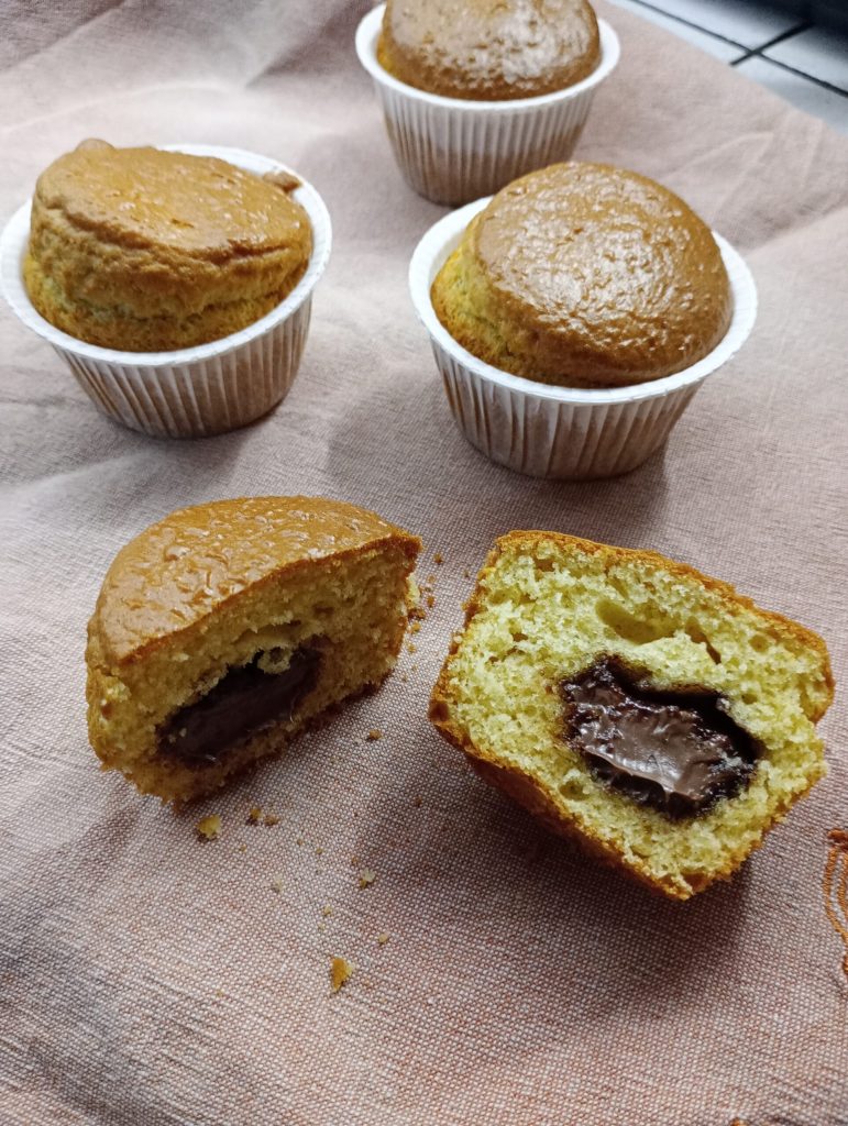Superschnelle Muffins in der Heißluftfritteuse gebacken. Heute schlage ich euch köstliche, weiche und zarte kleine Kuchen vor, perfekt für euer Frühstück oder einen schnellen Snack. Diese weichen Muffins vorzubereiten ist wirklich kinderleicht: Ihr braucht nur fünf Minuten für den Teig und nur zehn Minuten für das Backen direkt in der Heißluftfritteuse! Sie sind ideal für alle, die wenig Zeit haben, um ein leckeres Dessert vorzubereiten. Diese Muffins, die ich euch vorschlage, sind Vanillegeschmack mit einem unwiderstehlichen Schokoladenkern. Das Backen in der Heißluftfritteuse hilft uns, die Zeit zu halbieren, und das Ergebnis ist wirklich erstaunlich: Ich versichere euch, dass diese Muffins superweich sind!