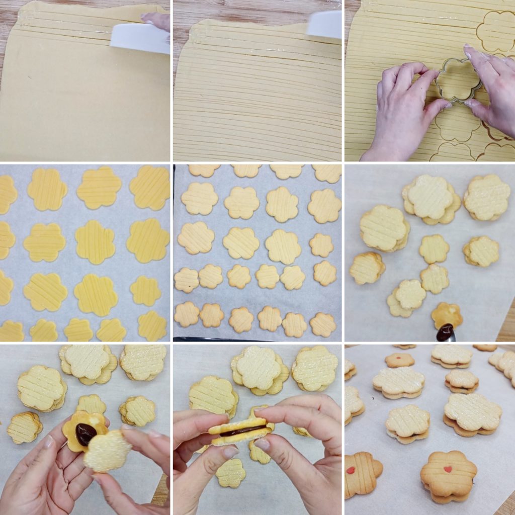 Mit diesen Mengen erhalten Sie etwa 40-50, die dann etwa 20/25 Kekse ergeben. Natürlich hängt es von der Größe ab, die Sie verwenden. Ich habe eine Blumenform von 7 cm und 5 cm verwendet.