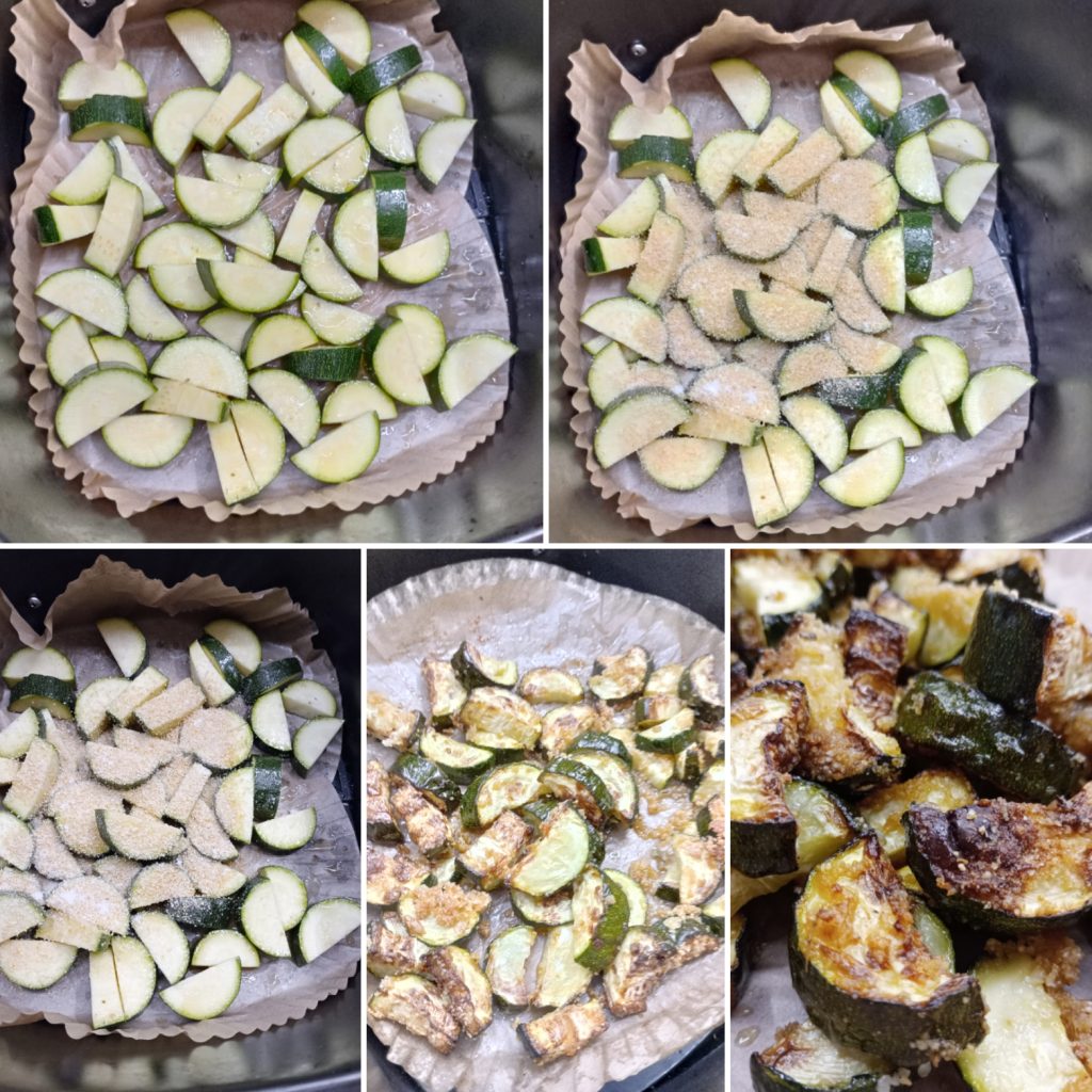 Eine Beilage, die sehr einfach zuzubereiten, nahrhaft und lecker ist. Dank der Heißluftfritteuse haben wir in 20 Minuten köstlich gratinierte Zucchini. Die Zucchini, die in der Heißluftfritteuse gegart werden, sind auch hervorragend als Pastasauce. Kommt mit mir, wir fangen an zu kochen.