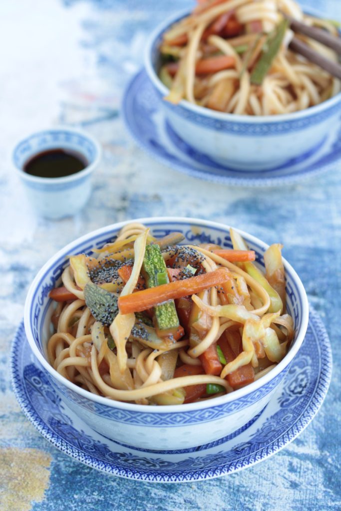 Kocht die Udon in reichlich Salzwasser (beachtet die Packungsangaben, da es verschiedene Sorten gibt) und lasst sie leicht al dente in den Wok abtropfen. Lasst sie schwenken, damit sie sich gut mit dem Gemüse verbinden, fügt Chili hinzu, wenn ihr mögt, oder einen Hauch Ingwer, und serviert.