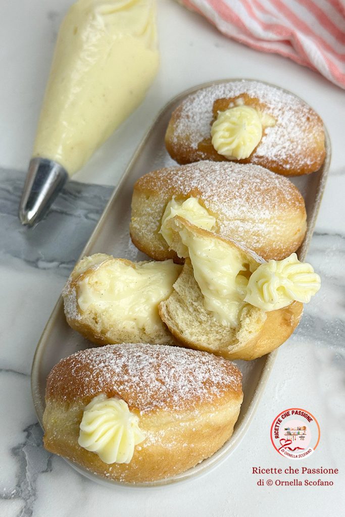 Schritte zur Zubereitung von Krapfen mit Vanillecreme