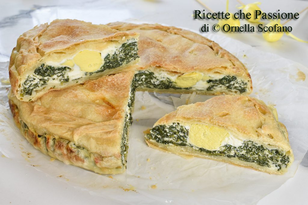 Torta Pasqualina mit Ricotta und Spinat, perfekt zu servieren unter den Ostervorspeisen oder für den legendären Osterspaziergang vorbereitet, aber ich sage Ihnen die Wahrheit, ich bereite es das ganze Jahr über zu, es ist so einfach zu machen, so leicht und schmackhaft, dass es auch als Hauptgericht sowohl zum Mittag- als auch zum Abendessen perfekt ist, oder vielleicht bequem bei der Arbeit zu genießen, weil es nicht aufgewärmt werden muss, aber wer es heiß genießen möchte, kann es natürlich tun. Für die Torta Pasqualina wird ein einfacher Teig aus Wasser und Mehl mit wenig Olivenöl, der verrückte Teig, verwendet, den Sie inzwischen alle kennengelernt haben, es ist ein einfach zuzubereitender Teig, ohne Hefe, und er ist sehr vielseitig, sowohl für süße als auch für herzhafte Gerichte, auch hervorragend für Panzerotti und gebratene oder gebackene Ravioli, Strudel und vieles mehr. Das Rezept der Torta Pasqualina stammt ursprünglich aus Ligurien, wird normalerweise mit Mangold statt mit Spinat zubereitet und hat ganze 33 Schichten; mittlerweile ist es in der ganzen Halbinsel verbreitet, und ich bereite es gerne auch mit kleinen Variationen zu. Ich habe viel weniger Schichten des verrückten Teigs gemacht, so ist es auch leichter, aber ich würde nie auf die Grundlage des Rezepts verzichten, den verrückten Teig, einen einfachen Teig mit Wasser, Mehl und Öl, wirklich schnell und so gut, mit wenig Öl wird er weich und köstlich.
