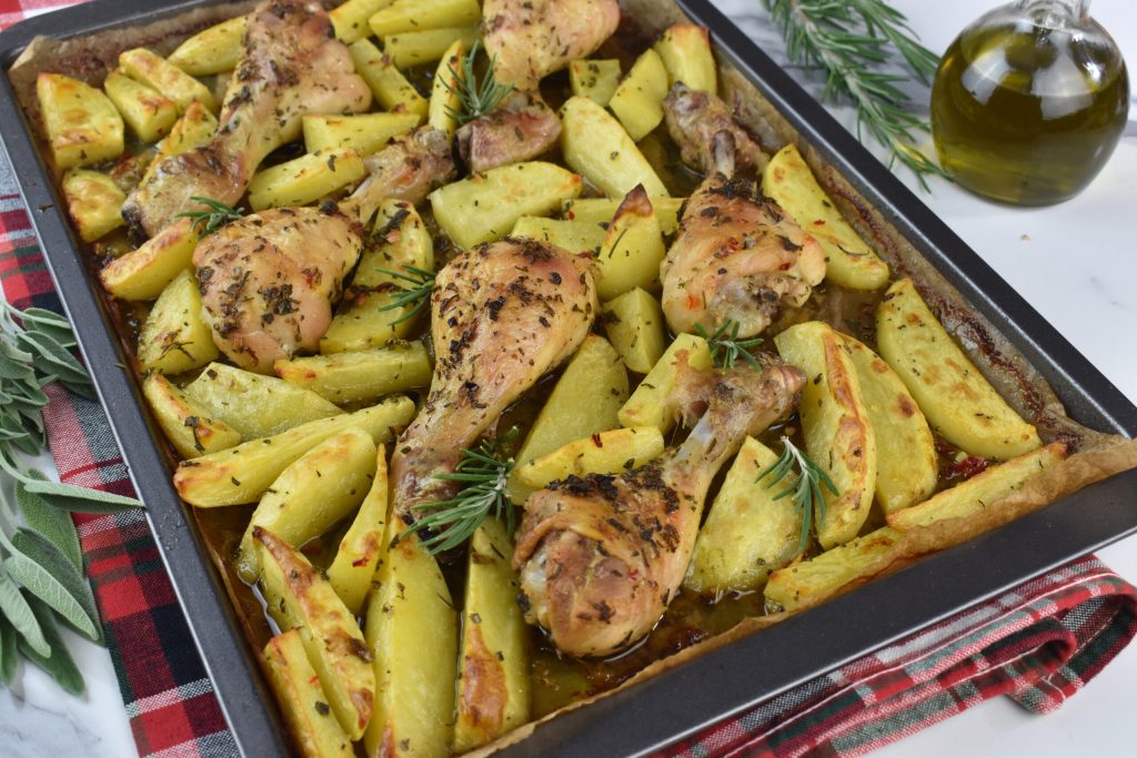Gebratene Hähnchenschenkel mit Ofenkartoffeln, wusstet ihr, dass dies das beliebteste Hauptgericht der Italiener ist? Es taucht sonntags auf den Tischen auf, mit seinen immer neuen Aromen und Geschmacksrichtungen, je nach den verwendeten Gewürzen und Kräutern. Das Brathähnchen kann auf Millionen verschiedene Arten zubereitet werden, aber es wird fast immer von Kartoffeln begleitet, was Sie wahrscheinlich auch bemerkt haben. Hähnchen mit Kartoffeln ist das perfekte Paar, fast wie Sandra und Raimondo (legendär). Das Brathähnchen kann im Ofen zubereitet werden, früher war das Backen im Holzofen auf dem Land üblich, aber mit dem Fortschritt wurde der Holzofen durch den Elektroherd ersetzt. Man kann es auch auf dem Herd in der Pfanne zubereiten, wie es die meisten von uns normalerweise tun, aber heute schlage ich Ihnen die Ofenmethode vor, die noch einfacher ist, weil man es einfach fertig aus dem Ofen holt, ohne es beaufsichtigen zu müssen. Ich erinnere mich, dass meine Mutter es oft in der Pfanne zubereitet hat, und nachdem das Huhn gekocht war, hat sie in den übrig gebliebenen Fetten auch die Kartoffeln gekocht, die eine leckere goldene Kruste bekamen. Als ich älter wurde, habe auch ich gelernt, es wie meine Mutter zuzubereiten. Ich erinnere mich mit Nostalgie an die Sonntage zu Hause, wenn ich mich anmeldete, zu kochen. Ich erinnere mich noch an das erste Mal, ich war 12, wie viel Freude es mir bereitete, traditionelle Gerichte mit etwas Originalität auf den Tisch zu bringen und vor allem die ganze Familie glücklich am Tisch zu sehen, die ein leckeres Mittagessen genoss. Ich war doppelt so glücklich, weil ich es selbst zubereitet hatte, und das Brathähnchen mit Kartoffeln war eines dieser Gerichte, die bei unserem festlichen Sonntagsessen auf dem Tisch standen. Auch wenn ich als Erwachsene mehr Abwechslung in die Gerichte bringe, die ich auf den Tisch bringe, gebe ich zu, dass ich mich jetzt gerne an eine der Zeiten erinnern würde, als wir alle zusammen saßen, um das von meiner Mutter zubereitete Mittagessen zu genießen, mit ihrer legendären Grilllasagne und dem Brathähnchen mit Kartoffeln als Hauptgericht.