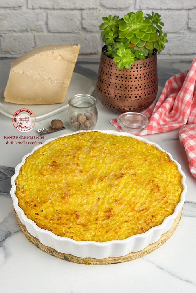 Ich bereite schnell die Béchamel zu, indem ich Mehl und Muskatnuss in einem kleinen Topf mische. Ich habe nach und nach die Milch hinzugefügt und mit einem Silikonschaber umgerührt, um eine klumpenfreie Creme zu erhalten, dann habe ich die gesamte Milch, Salz hinzugefügt und unter ständigem Rühren bis zum Kochen gebracht, bei ausgeschaltetem Feuer habe ich eine gute Menge geriebenen Parmesan hinzugefügt. Ich gebe Ihnen einen Tipp für die Ersetzung der Béchamel, ein Glas Milch und geriebene Muskatnuss und Parmesan direkt in der Reisschüssel, bereits ausprobiert, es wird genauso gut, ohne die Béchamel zu kochen, und ohne Mehl hinzuzufügen, denn es gibt bereits die Stärke des Reises.