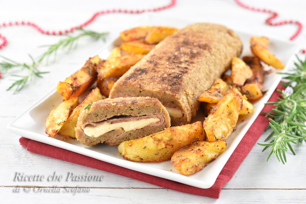 Hackbraten mit Porchetta und geräuchertem Provola mit Paprikakartoffeln