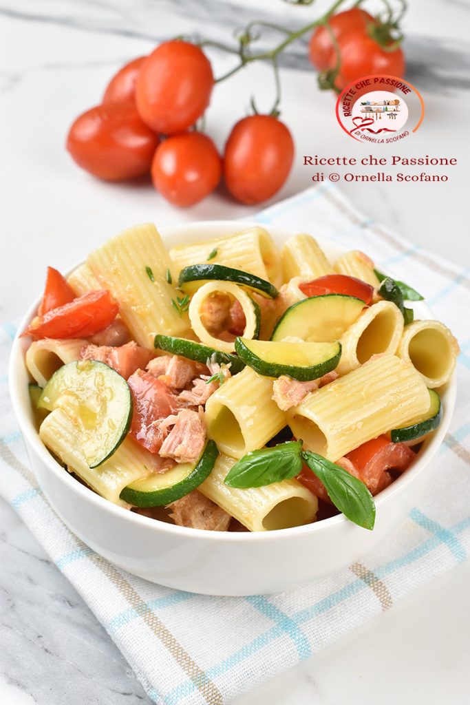 Frisch und schnell: der kalte Nudelsalat mit Zucchini und Thunfisch, in wenigen Minuten zubereitet, genau die Zeit zum Kochen der Nudeln. Bei Hitze schmeckt er hervorragend kalt aus dem Kühlschrank, aber in anderen Jahreszeiten kann er auch warm zubereitet werden, also ein schmackhaftes Gericht, das das ganze Jahr über zubereitet werden kann, als kalter Nudelsalat oder Nudelinsalat mit gebratenen Zucchini, köstlich und leicht, und Thunfisch aus der Dose, der einen außergewöhnlichen Geschmack verleiht. Man kann ihn auch durch frische Garnelen, Lachs, Thunfisch oder Schwertfisch ersetzen, um immer etwas anderes und köstlich Gutes auf den Tisch zu bringen. Schauen wir, wie man ihn zubereitet.