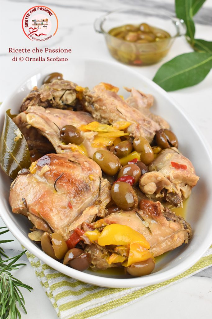 Ein sehr leckeres Kaninchen in der Pfanne nach Jägerart mit Paprika und Oliven, einfach im Topf zuzubereiten, duftend mit frischen Kräutern und im Weißwein gegart, für einen wirklich besonderen Geschmack. Wenn das Kaninchen aus eigener Zucht stammt, ist es noch besser. Als Mädchen bin ich immer losgegangen, um Gras für unsere Kaninchen zu sammeln. Wir hatten 200 davon, und daher fehlte es nie auf unserem Tisch. So habe ich gelernt, es zu schätzen und auf die beste Weise zuzubereiten, um den Geschmack hervorzuheben und es nicht zu stark werden zu lassen. Ich mag es, es mit Weißwein zu kochen, wie meine Mutter es mir beigebracht hat, der Geschmack ist so feiner, auch alleine sehr gut, aber mit Paprika und Oliven wird es besonders. Probier es auch aus, ich bin sicher, dass du es auch lieben wirst.